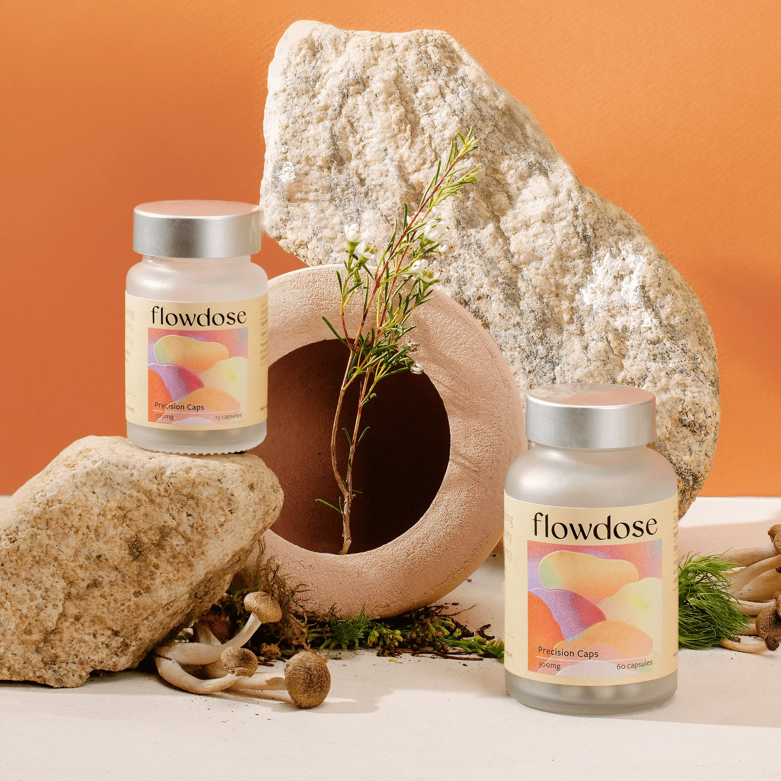 The Precision Caps by Flowdose is a curated selection of nootropic capsules designed to reduce stress and anxiety, improve focus, and boost creativity. It includes a range of dosages to help you find your perfect level of cognitive enhancement.